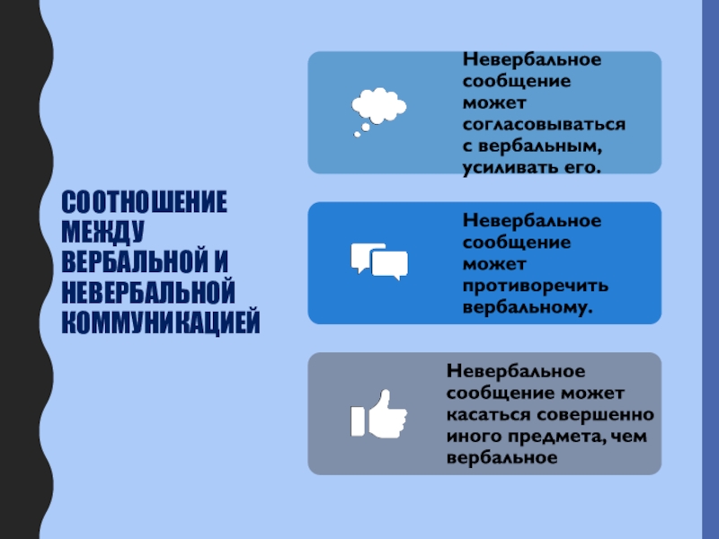 Слайд 14Соотношение между вербальной и невербальной коммуникацией