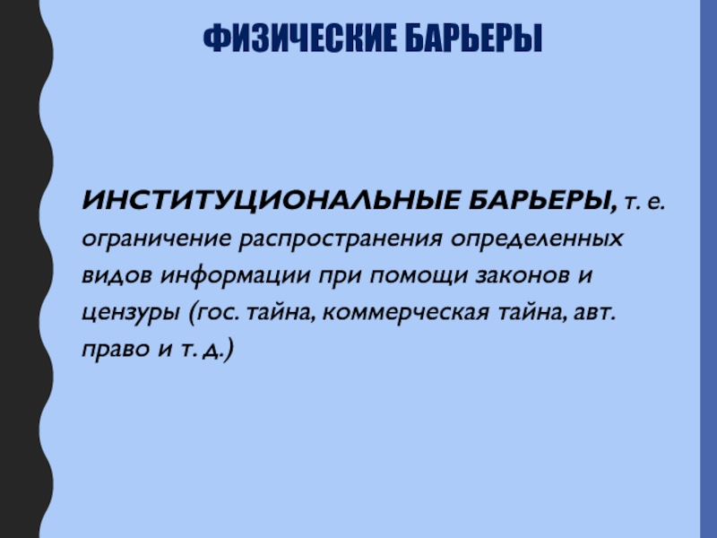ИНСТИТУЦИОНАЛЬНЫЕ БАРЬЕРЫ, т. е. ограничение распространения определенных видов информации