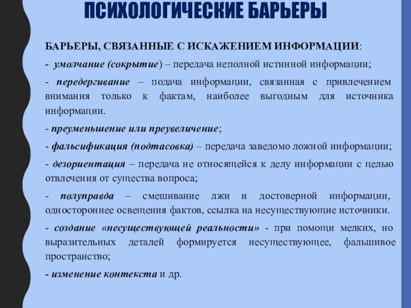 БАРЬЕРЫ, СВЯЗАННЫЕ С ИСКАЖЕНИЕМ ИНФОРМАЦИИ: