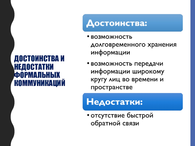 Слайд 21Достоинства и недостатки формальных коммуникаций