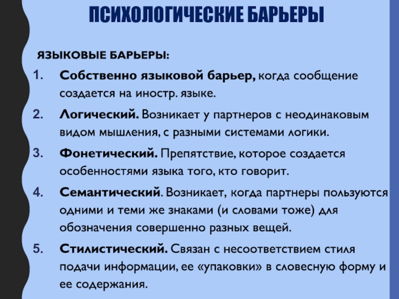 Слайд 50ПСИХОЛОГИЧЕСКИЕ БАРЬЕРЫ