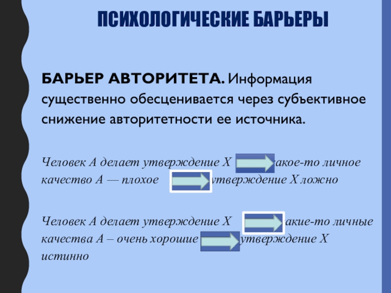 БАРЬЕР АВТОРИТЕТА. Информация существенно обесценивается через субъективное снижение авторитетности