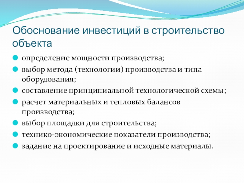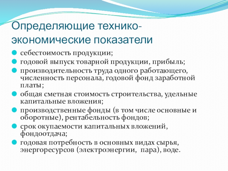 Слайд 11производственная программа, основные технико-экономические показатели объекта;