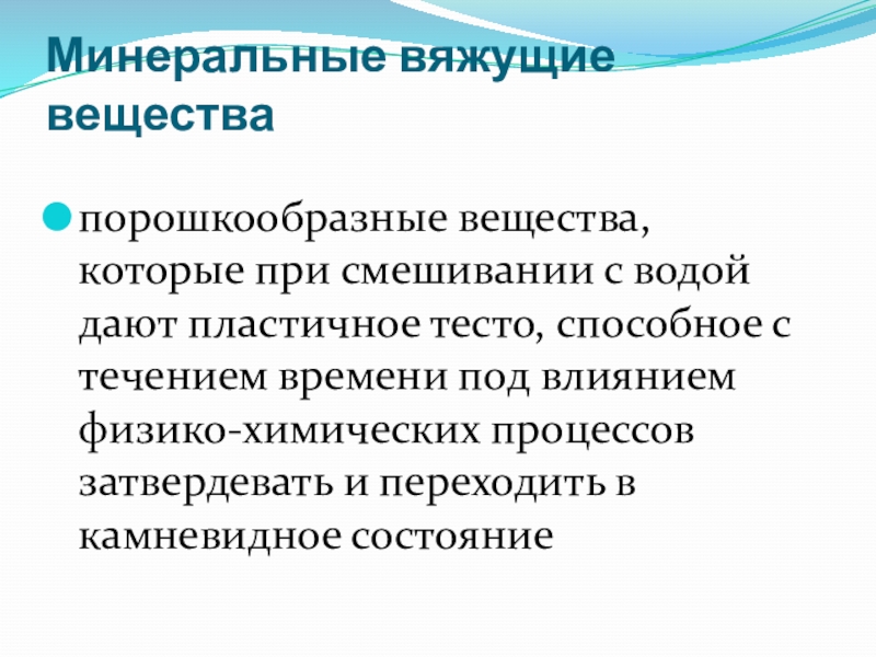 Слайд 29Воздушные вяжущие могут затвердевать и длительно сохранять прочность только на