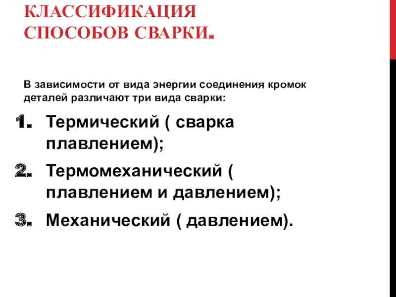 энергия и давление: контактная, диффузионная, газопрессовая, дугопрессовая и др.