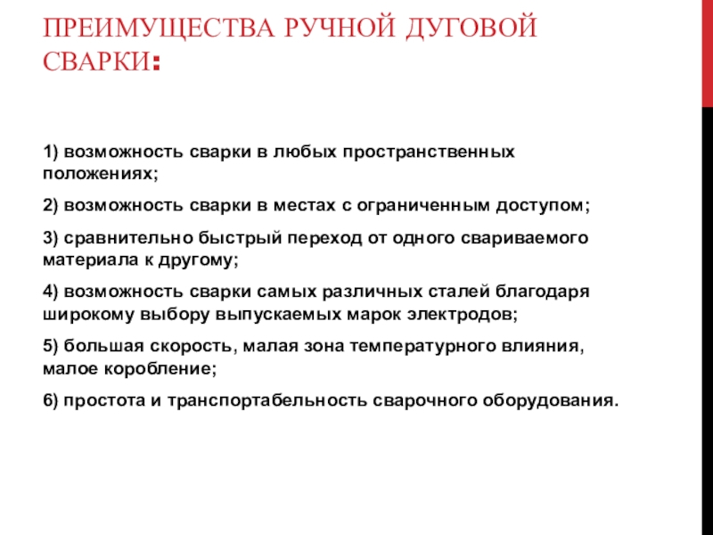 5) большая скорость, малая зона температурного влияния, малое коробление;