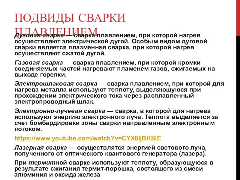 сварки: сварка плавлением и ее подвиды, сварка давлением и ее