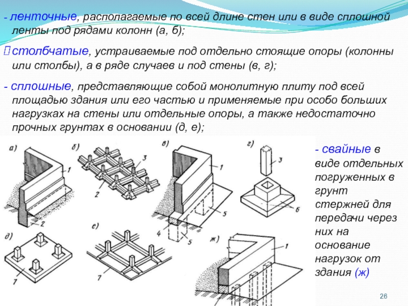 Слайд 11Фундаменты являются подземной конструкцией, воспринимающей всю нагрузку от здания и
