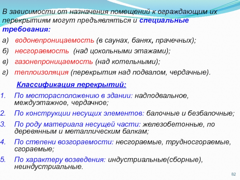 Перекрытия представляют собой горизонтальные несущие конструкции, опирающиеся на несущие стены или столбы и воспринимающие передаваемые на них постоянные и временные нагрузки.