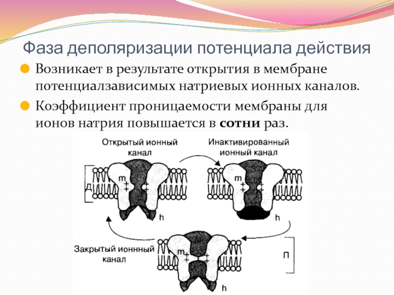 ПД – критический уровень деполяризации. В результате активируются потенциалзависимые натриевые каналы, что обеспечивает входящий ток ионов натрия в клетку.