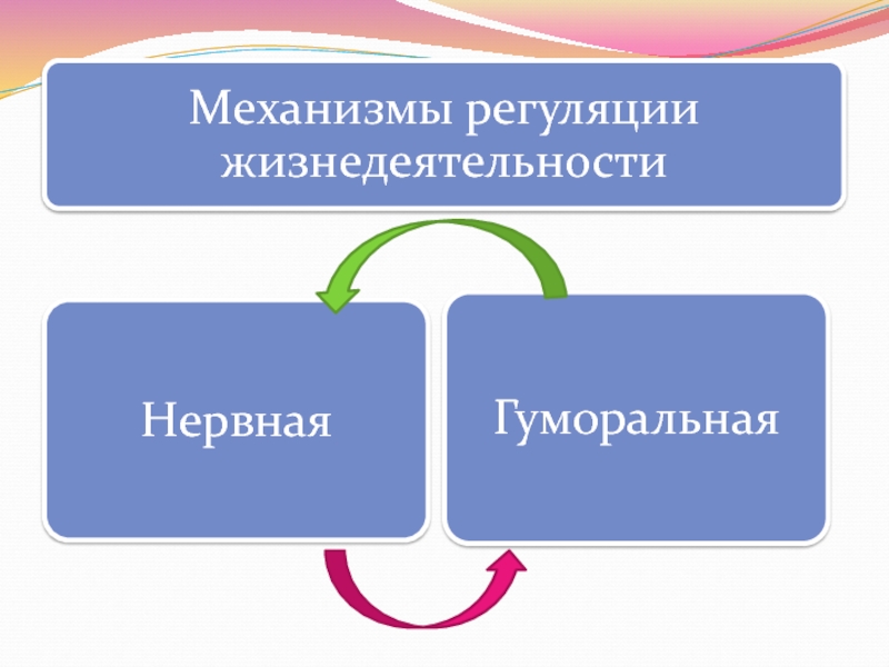 Слайд 18Деление механизмов регуляции жизнедеятельности на нервные и гуморальные условно и