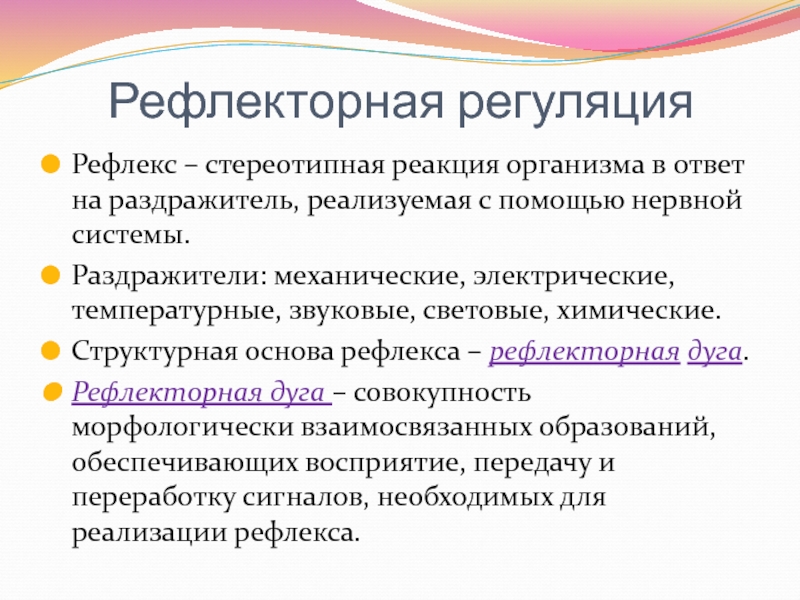 Рефлекс – стереотипная реакция организма в ответ на раздражитель,