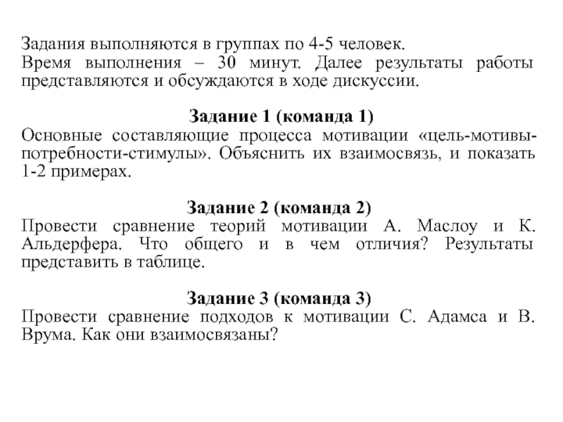 Высшая школа экономики, Москва, 2017Задания выполняются в группах по 4-5 человек. Время выполнения – 30 минут. Далее результаты работы представляются и обсуждаются в ходе дискуссии. Задание 1 (команда 1)Основные составляющие процесса