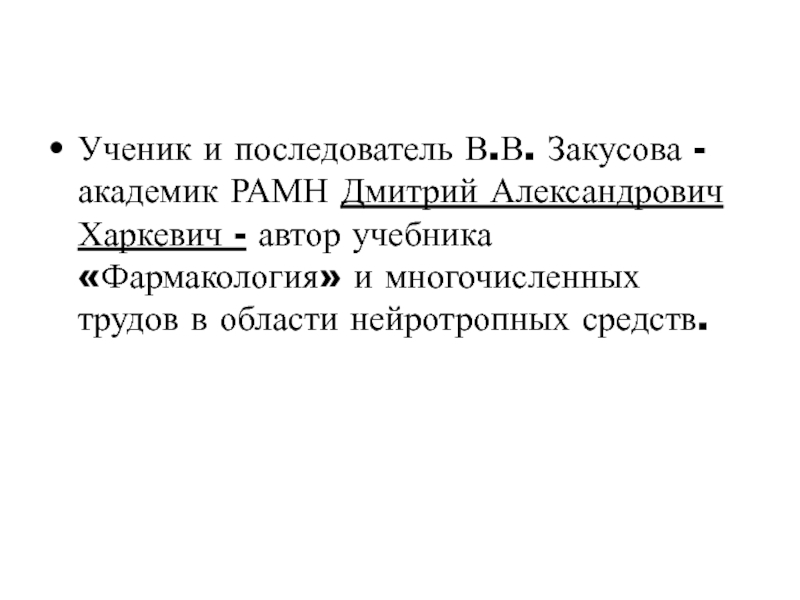 Ученик и последователь В.В. Закусова - академик РАМН Дмитрий Александрович