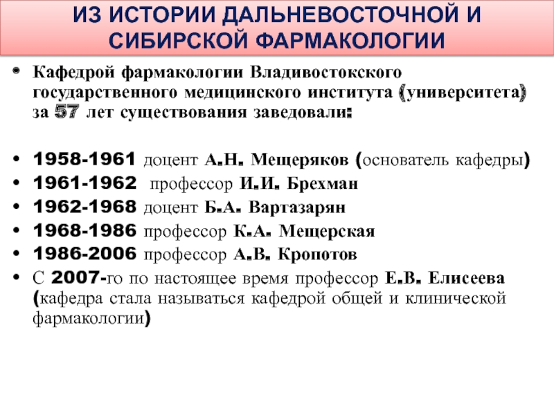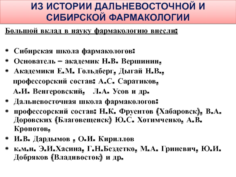 Слайд 72ИЗ ИСТОРИИ ДАЛЬНЕВОСТОЧНОЙ И СИБИРСКОЙ ФАРМАКОЛОГИИ