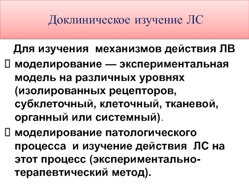 Экспериментальная фармакология - связующее звено между теоретической