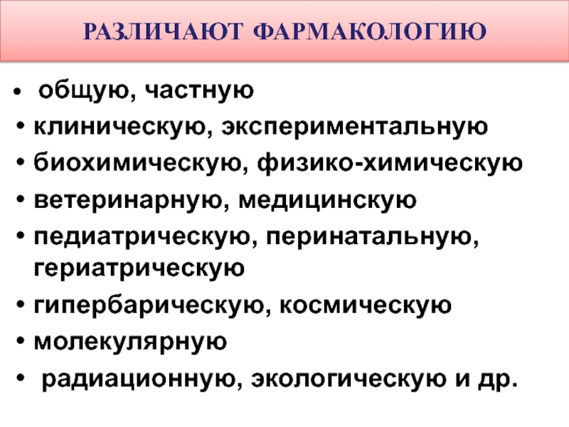Слайд 4РАЗЛИЧАЮТ ФАРМАКОЛОГИЮ