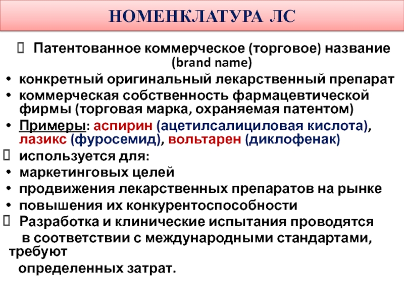 Номенклатура ЛС.