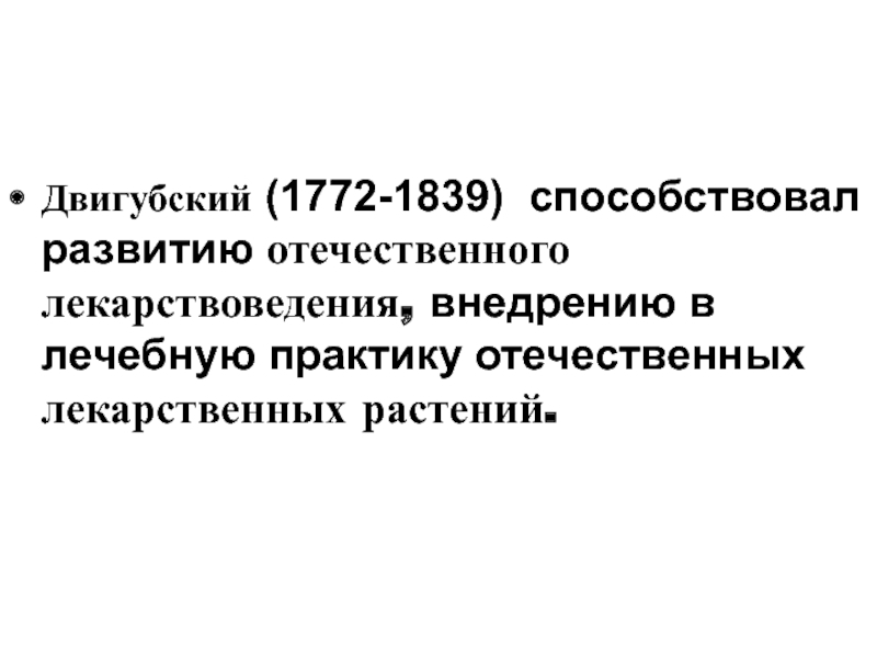 Двигубский (1772-1839) способствовал развитию отечественного лекарствоведения, внедрению в лечебную практику