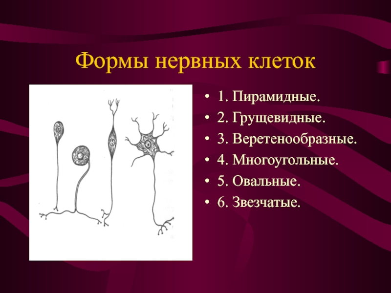Пирамидные нейроны, средние и крупные мультиполярные нейроны – двигательные.