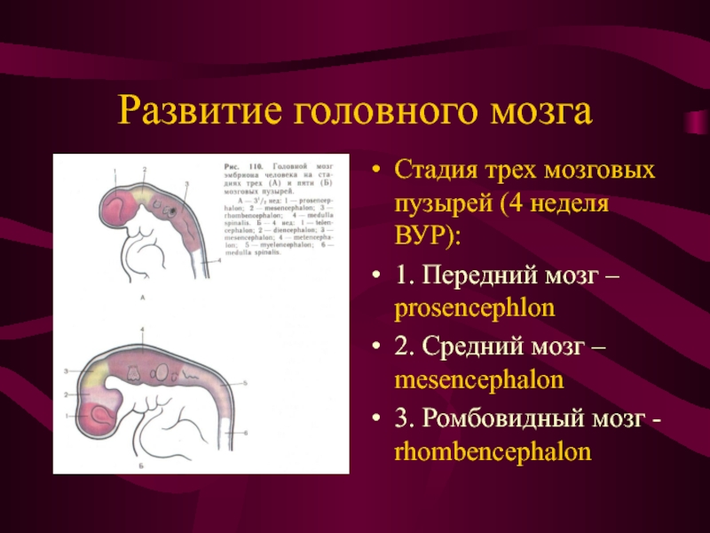 Стадия трех мозговых пузырей (4 неделя ВУР):