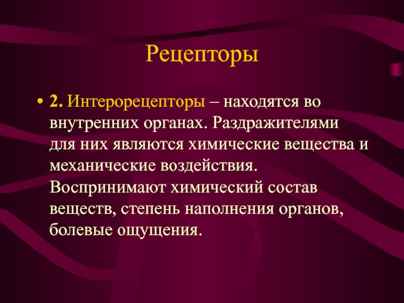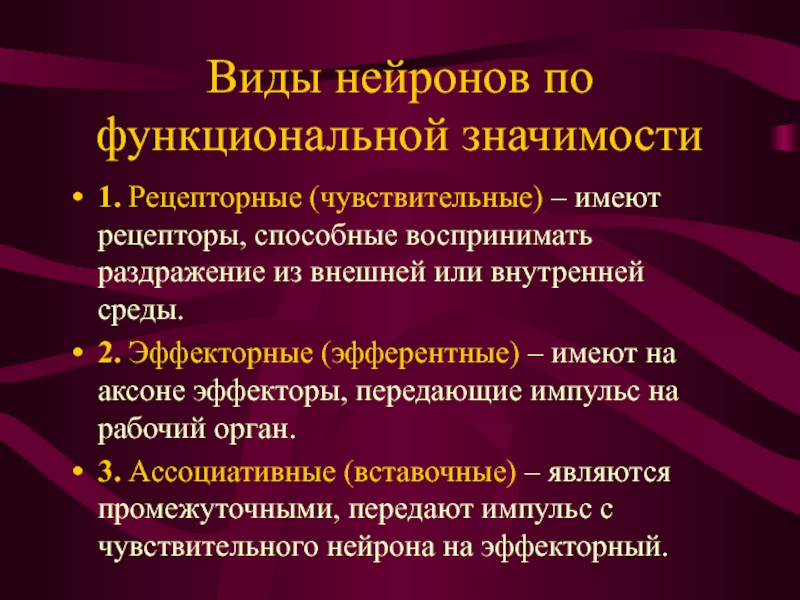 1. Рецепторные (чувствительные) – имеют рецепторы,