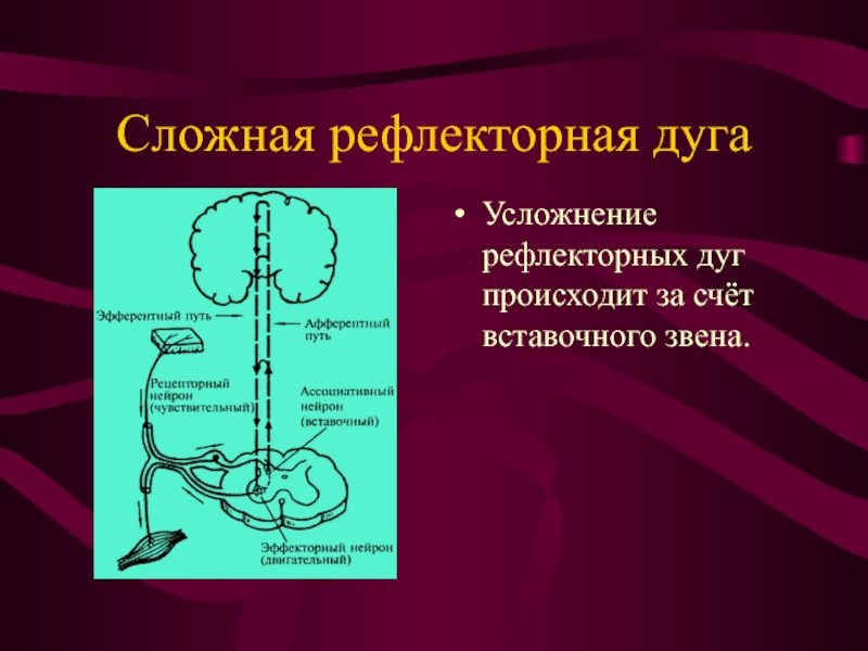Усложнение рефлекторных дуг происходит за счёт вставочного звена.