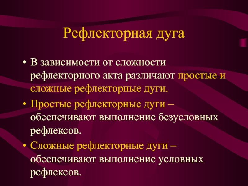 Простые рефлекторные дуги – обеспечивают выполнение безусловных рефлексов.
