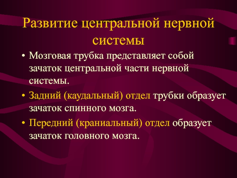 Задний (каудальный) отдел трубки образует зачаток спинного мозга.