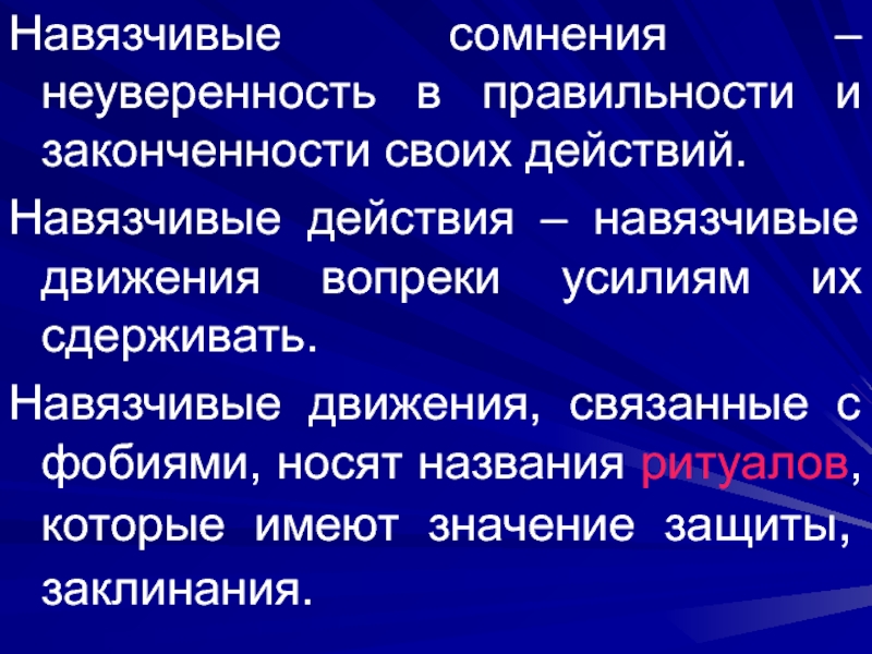 Слайд 54Навязчивые сомнения – неуверенность в правильности и законченности своих действий.