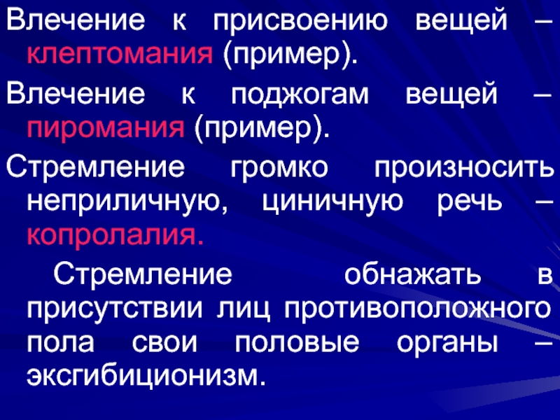 сделать что-нибудь, то есть навязчивым влечением. Поэтому принято говорить о