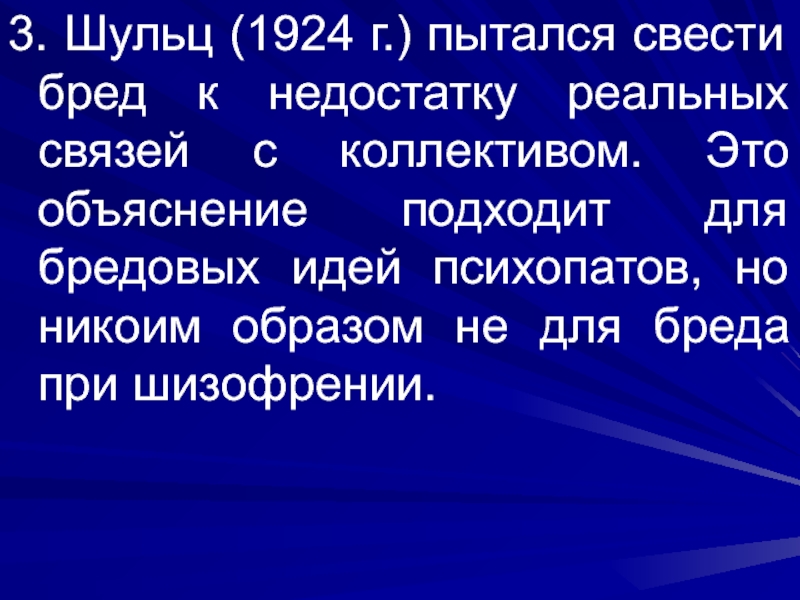 Слайд 163. Шульц (1924 г.) пытался свести бред к недостатку реальных
