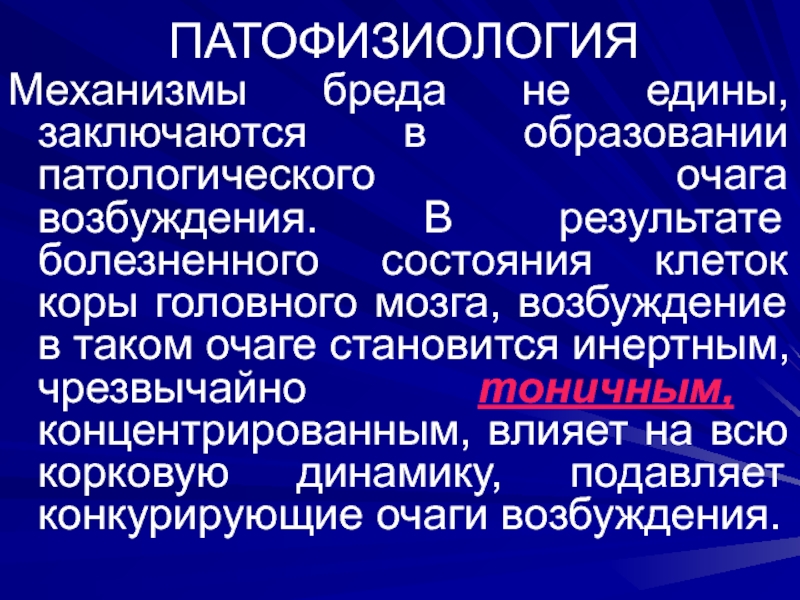 Механизмы бреда не едины, заключаются в образовании патологического очага