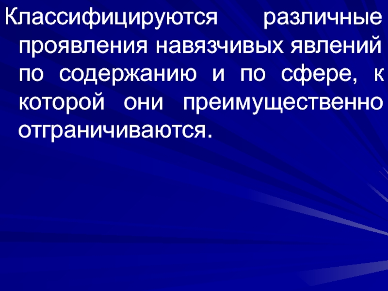 Слайд 48Классифицируются различные проявления навязчивых явлений по содержанию и по сфере,