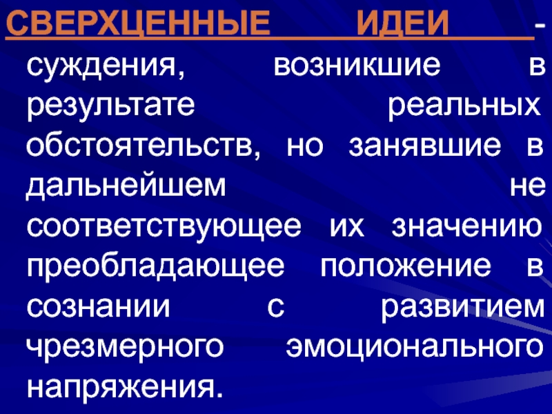Слайд 42СВЕРХЦЕННЫЕ ИДЕИ - суждения, возникшие в результате реальных обстоятельств, но