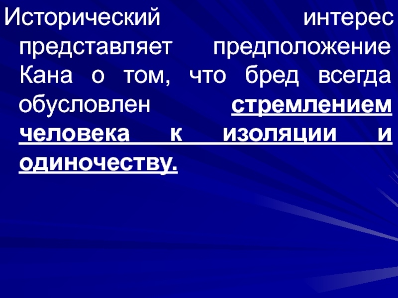 Слайд 17Исторический интерес представляет предположение Кана о том, что бред всегда