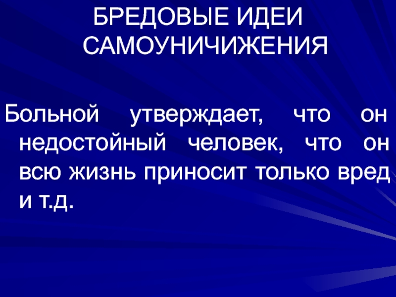 Слайд 28БРЕДОВЫЕ ИДЕИ САМОУНИЧИЖЕНИЯ