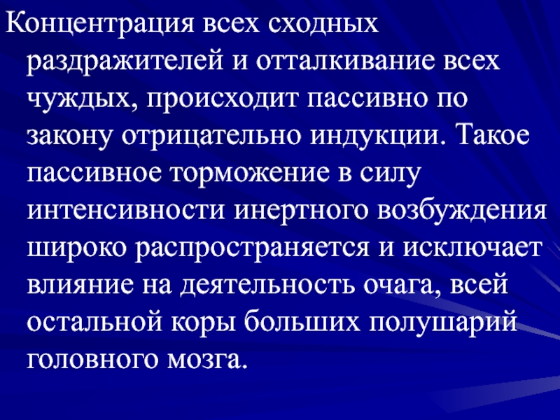 Слайд 34Концентрация всех сходных раздражителей и отталкивание всех чуждых, происходит пассивно