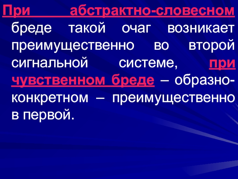Слайд 36При абстрактно-словесном бреде такой очаг возникает преимущественно во второй сигнальной
