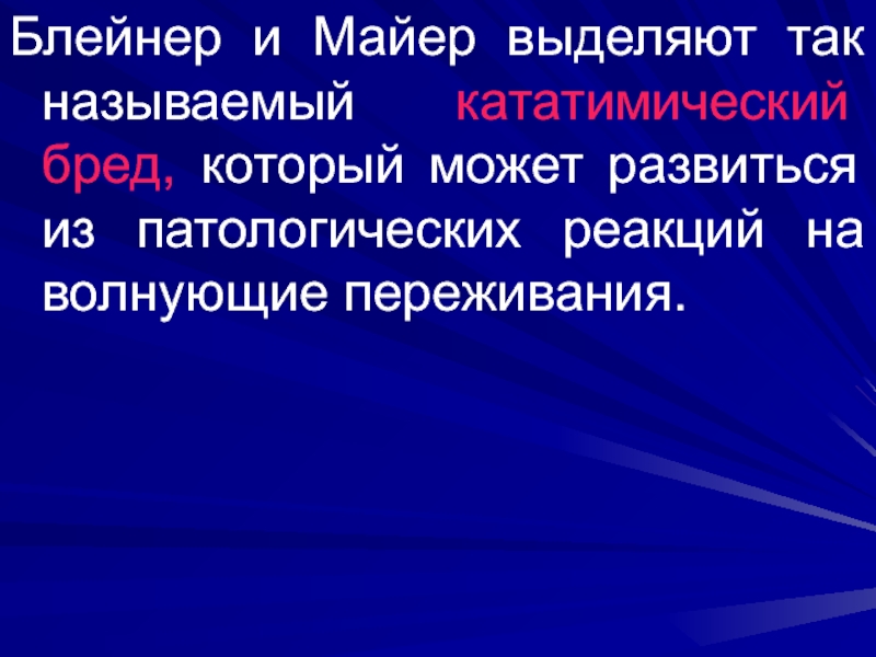 Слайд 24Блейнер и Майер выделяют так называемый кататимический бред, который может