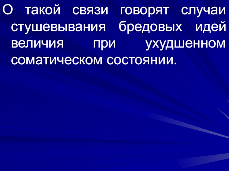 Слайд 21О такой связи говорят случаи стушевывания бредовых идей величия при