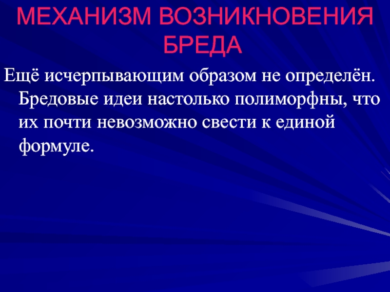 Слайд 10МЕХАНИЗМ ВОЗНИКНОВЕНИЯ БРЕДА