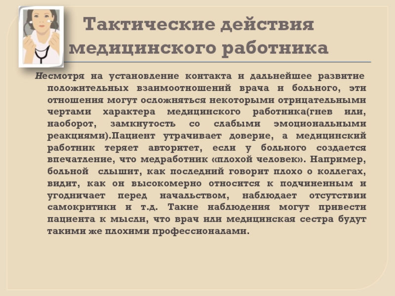 Слайд 23Следует отметить, что личные недостатки медработника могут привести пациента к