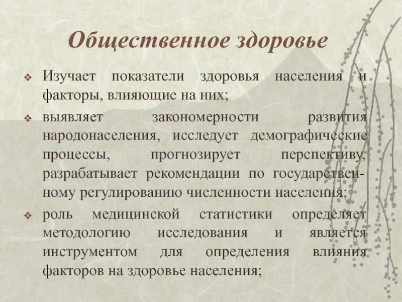 Общественное здоровье – медико-социальный ресурс и потенциал общества, способствующий обеспечению социальной безопасности (МЗ)