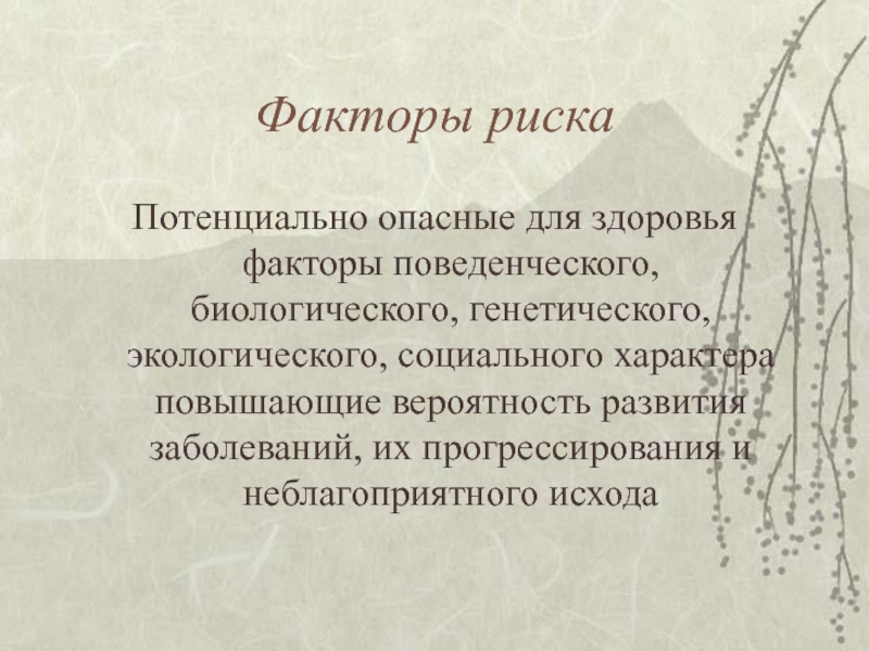 Потенциально опасные для здоровья факторы поведенческого, биологического, генетического, экологического,