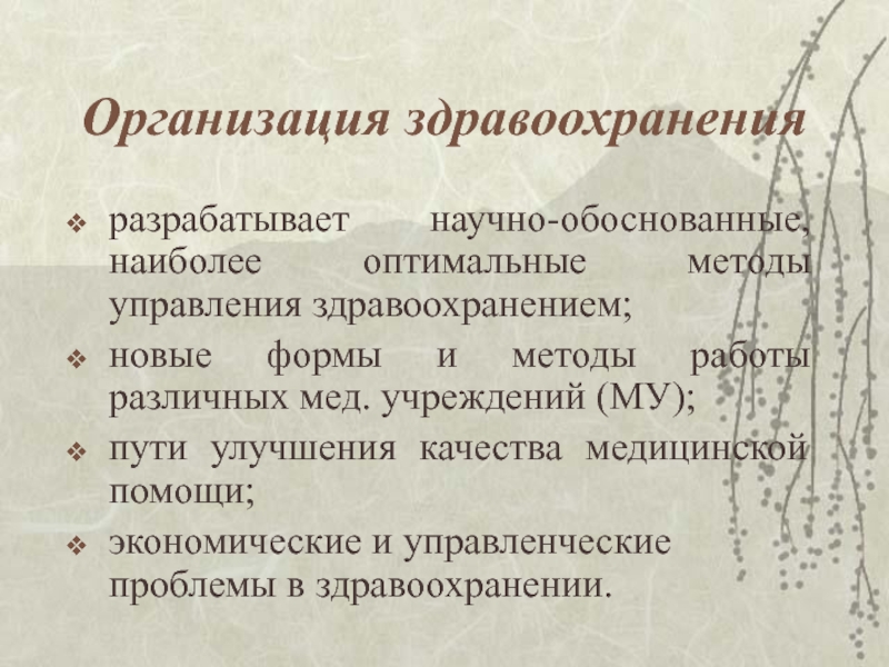 разрабатывает научно-обоснованные, наиболее оптимальные методы управления здравоохранением;