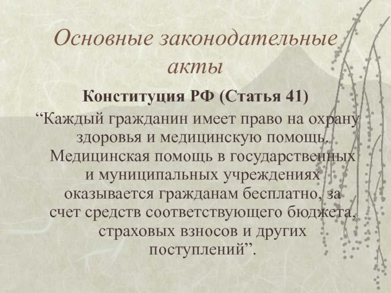 на охрану здоровья и медицинскую помощь. Медицинская помощь в государственных