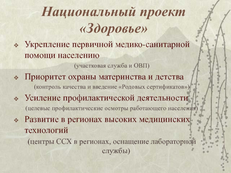 подход к изучению здравоохранения. Национальный проект «здоровье».