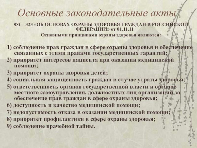 ФЗ – 323 «ОБ ОСНОВАХ ОХРАНЫ ЗДОРОВЬЯ ГРАЖДАН