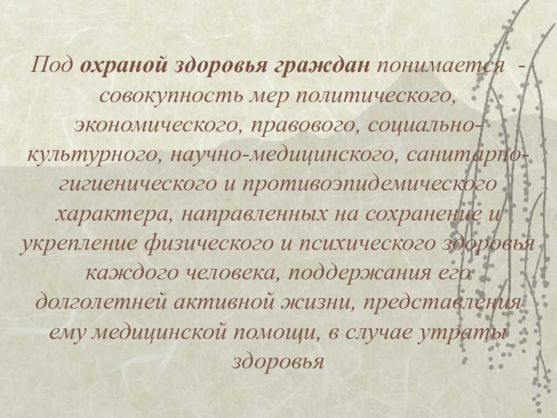Слайд 22Под охраной здоровья граждан понимается - совокупность мер политического, экономического,